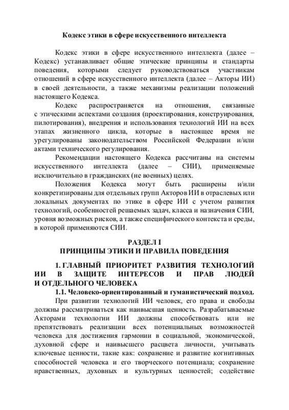 Кодекс этики в сфере искусственного интеллекта
